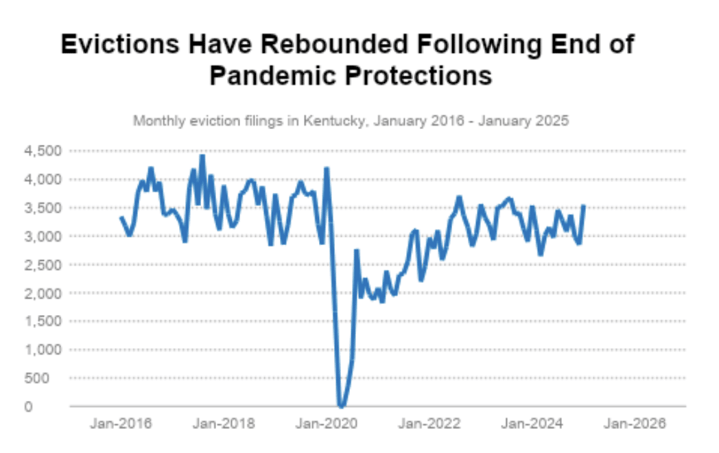 Across Kentucky, about 4,000 people experience homelessness on any given night, and our state is now criminalizing homelessness–putting people in jail simply for having no other place to go. This means that evictions, displacement, and the lack of affordable housing options in our state are more of a threat to Kentucky families than ever before.